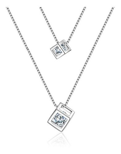 Colar Pingente Duplo De Cristal em prata esterlina 925, forma quadrada com dupla camada de crystal.